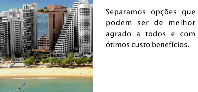 Hotel Gran Marquise Endereço: Av. Beira Mar, 3980 - Mucuripe Telefone: (85) 4006-5000 Hotel Praia Centro Endereço: Av. Monsenhor Tabosa, 740 - Praia de Iracema Telefone: (85) 3083-1122 Holiday Inn Fortaleza Endereço: Av. Historiador Raimundo Girão, 800 - Praia de Iracema Telefone: (85) 3455-5000 Seara Praia Hotel | Fortaleza Endereço: Av. Beira Mar, 3080 - Meireles Telefone: (85) 4011-2200 Luzeiros Hotel Endereço: Av. Beira Mar, 2600 - Meireles Telefone: (85) 4006-8585
