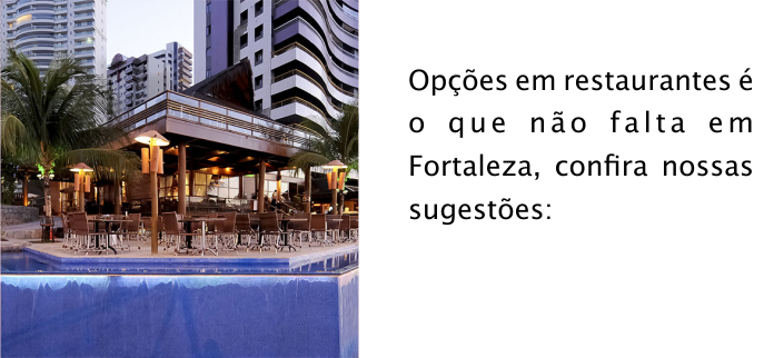 Coco Bambu Beira Mar Endereço: Av. Beira Mar, 3698 - Beira Mar Telefone: (85) 3198-6000 Cabaña Del Primo Endereço: R. Maria Tomásia, 503 - Aldeota Telefone: (85) 3244-3691 Moleskine Gastrobar Endereço: Rua Professor Dias da Rocha, 578 - Meireles Telefone: (85) 3037-1700