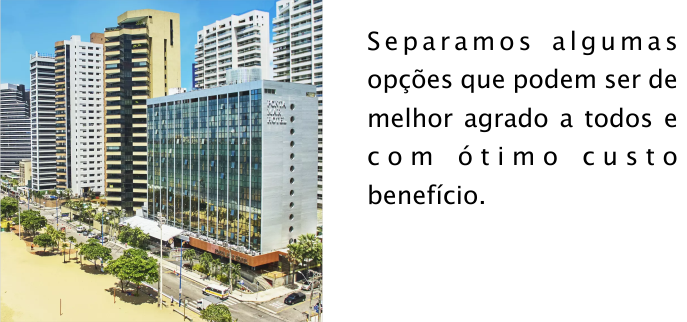 Hotel Gran Marquise Endereço: Av. Beira Mar, 3980 - Mucuripe Telefone: (85) 4006-5000 Luzeiros Hotel Endereço: Av. Beira Mar, 2600 - Meireles Telefone: (85) 4006-8585 Gran Mareiro Hotel Endereço: Rua Oswaldo Araújo, 100 - Praia do Futuro Telefone: (85) 3104-7200 Hotel Othon Palace Fortaleza Endereço: Av. Beira Mar, 3470 - Meireles Telefone: (85) 3466-5500 Comfort Hotel Fortaleza Endereço: Rua Frei Mansueto, 160 - Meireles Telefone: (85) 4006-4800
