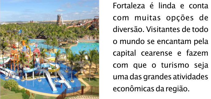 Beach Park - Maior Parque Aquático do Brasil Endereço: Rua Porto das Dunas, 2734 - Porto das Dunas Telefone: (85) 4012-3000 IPark - Museu da Cachaça Endereço: Estr. da Ypioca, s/n - Tapupara, Maracanaú Telefone: (85) 3341-0407 Parque do Cocó - Trilha Ecológica Endereço: Avenida Padre Antônio Tomas, s/n — Cocó. Telefone: (85) 3234-3574 Mercado Central de Fortaleza Endereço: Av. Alberto Nepomuceno, 199 - Centro Aberto todos os dias Feira de Artesanato Da Beira Mar Endereço: Av. Beira Mar, 37 - Meireles Todos os dias até as 22h30
