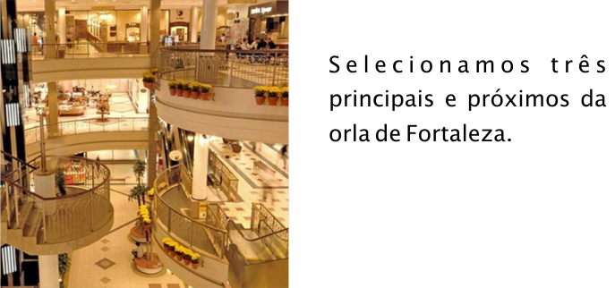 Shopping Iguatemi Fortaleza Endereço: Av. Washington Soares, 85 - Edson Queiroz Horário: Todos os dias das 10h as 22h RioMar Fortaleza Endereço: R. Des. Lauro Nogueira, 1500 - Papicu Horário: Todos os dias das 10h as 22h Shopping Aldeota Endereço: Av. Dom Luís, 500 - Aldeota Horário: Todos os dias das 09h as 21h